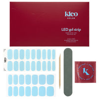 32 semi-cured LED Gel Strips in 11 different sizes, 1 nail prep pad, 1 manicure stick, 1 file