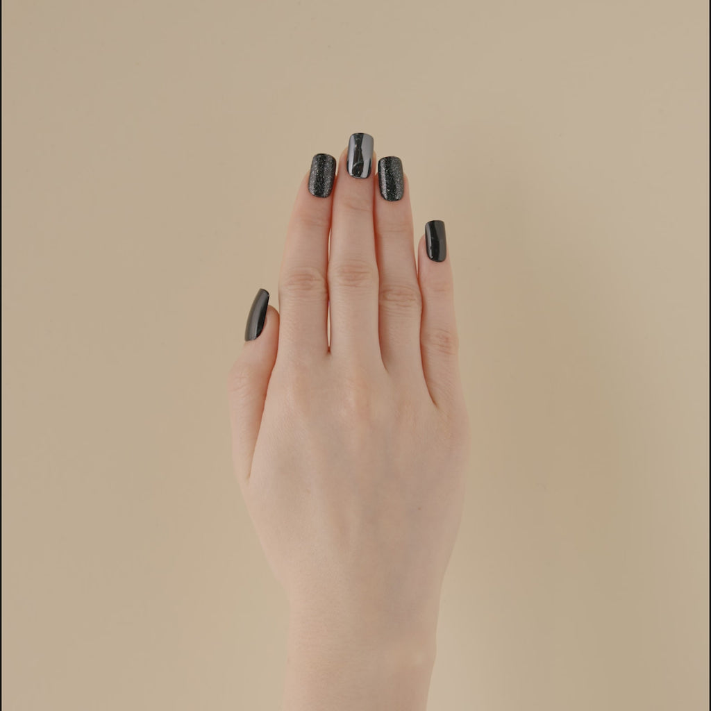 This set takes black from simple to statement. With a perfect mix of glossy, chrome, and glitter finishes, Black Listed gives your mani dimension, attitude, and just the right hit of edge. The perfect look for nights that run late.