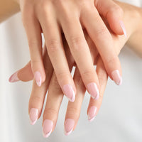 Select the Press-On Gel Nails that fit your nails best. Arrange press nails with the film tab to go on towards the cuticle area.