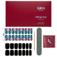 32 semi-cured LED Gel Strips in 11 different sizes, 1 nail prep pad, 1 manicure stick, 1 file