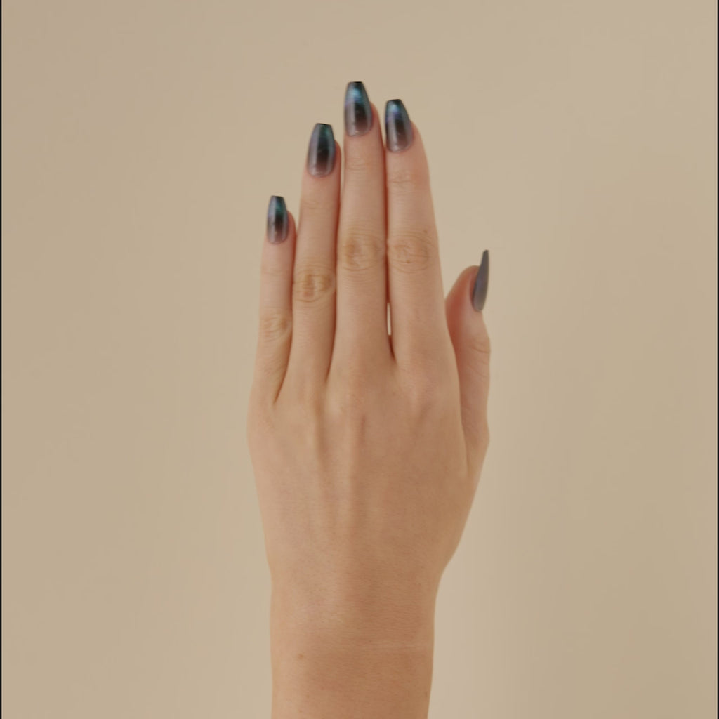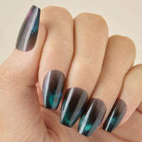 A shadowy base transitions seamlessly into teal and violet for a smooth, polished gradient. Elevated, cool, and beautifully dark, Midnight Melt carries the spirit of Transformative Teal into a deeper palette perfect for a night out.