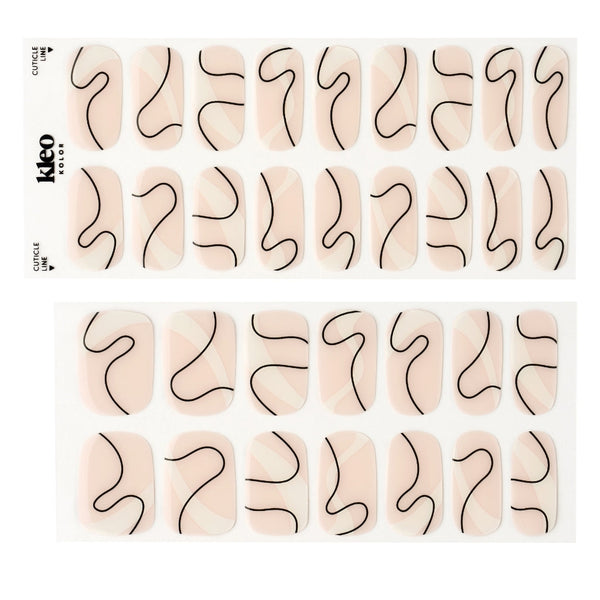 Fluid black lines sweep across a sheer blush base, creating contrast through movement and shape. The abstract detailing adds interest while keeping the overall look clean.