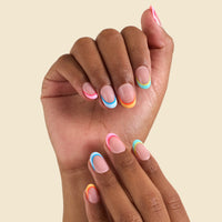 Select the Press-On Gel Nails that fit your nails best. Arrange press nails with the film tab to go on towards the cuticle area.