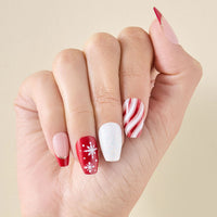Red tips with candy swirls and snowflakes bring pure holiday hype. The festive flex your nails have been waiting for.
