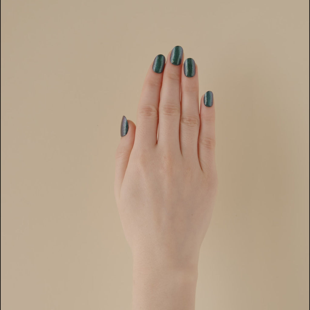 A magnetic teal merges into shades of plum and fuchsia for a style that feels alive with glow. The shifting tones echo the fresh-start energy of Transformative Teal while adding a soft glimmer throughout. Bold, fluid, and full of personality, it’s a standout in the Color of the Year lineup.